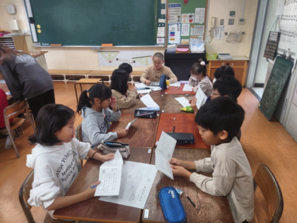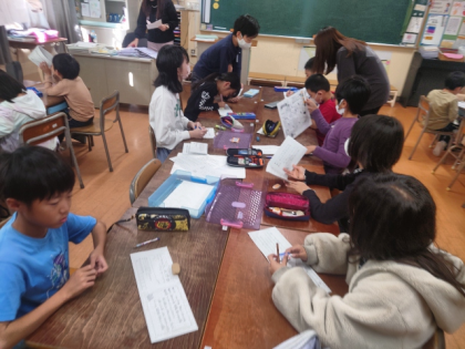 11月17日の全校オリエンテーリングに向けて、たてわり班ごとに分かれて、話し合いを行いました。