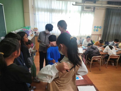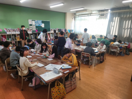 11月17日の全校オリエンテーリングに向けて、たてわり班ごとに分かれて、話し合いを行いました。