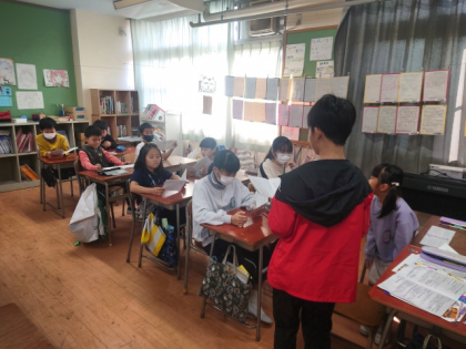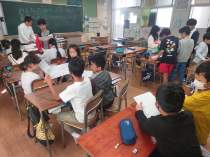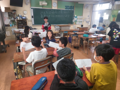 11月17日の全校オリエンテーリングに向けて、たてわり班ごとに分かれて、話し合いを行いました。
