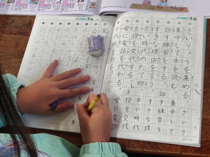 国語科の時間は、漢字ノートにていねいに漢字練習をしています。