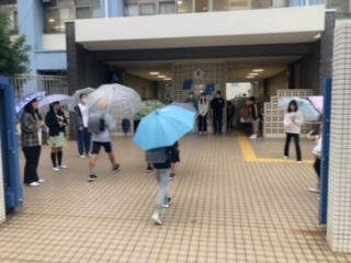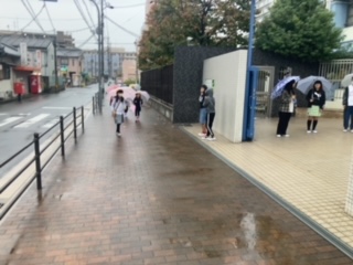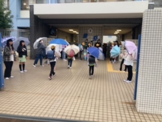 雨の中、運営委員会の子ども達が元気よくあいさつしていました。