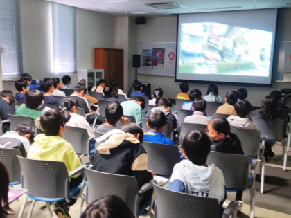 津波・高潮ステーションでは、まず自然災害の被害や対策、災害から身を守る方法などについて、動画を見て学習しました。