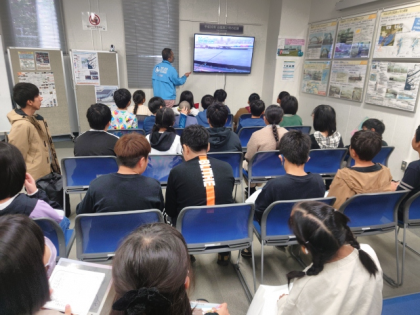 平成30年に台風21号が大阪に上陸したときのようすをもとに、高潮発生のようすと対策についてのお話を聞きました。