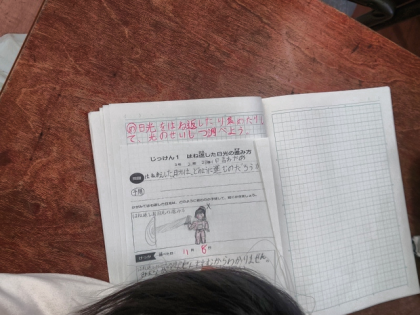 理科の時間は、日光をはね返したり集めたりして光の性質を調べました。