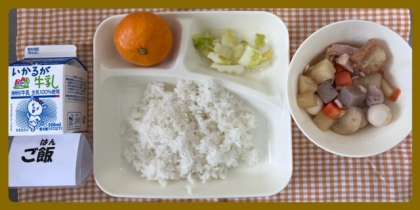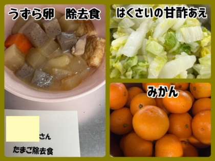 今日の献立は、関東煮・はくさいの甘酢あえ・みかん・ごはん・牛乳でした。