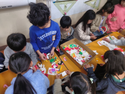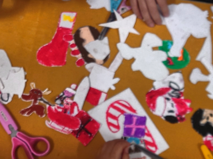 みんなでクリスマスの掲示物を作りました。