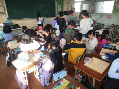 子どもたちは、立体作品「風せんランプ」の制作も仕上げに入っています。