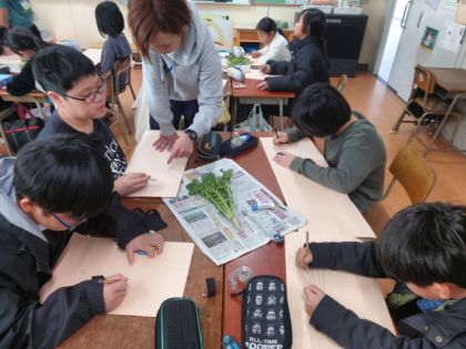 図工科の時間に、冬の味覚、大根の絵を描きました。