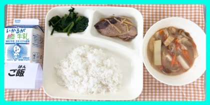 今日の献立は、なまりぶしのしょうが煮・なめこのみそ汁・ほうれんそうのごまあえ・ごはん・牛乳でした。