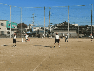 ボールを蹴ったランナーは、コーンをまわってベースに戻ってきます。
