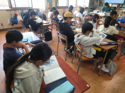 子どもたちが自分の席で、静かに本を読んでいます。