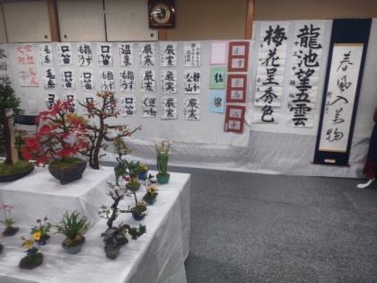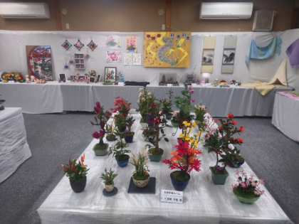 地域の方々が制作された書道や造形盆栽、絵画などの作品が展示されています。
