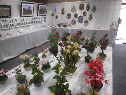 地域の方々が制作された書道や造形盆栽、絵画などの作品が展示されています。