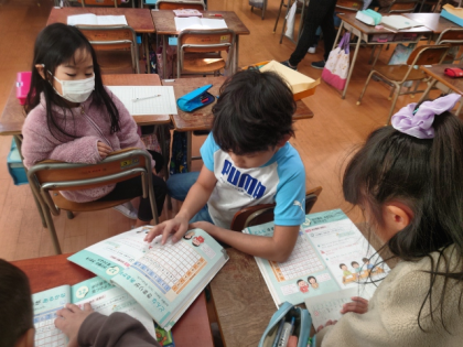 算数科の時間は、九九の表を見て、かけ算にはどんなきまりがあるのか調べました。