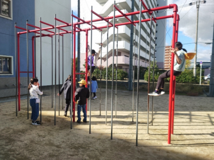 子どもたちが元気に外遊びしています。