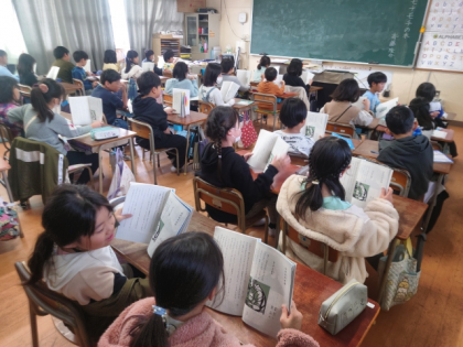 国語科の時間は、教科書の教材文「モチモチの木」を音読しています。
