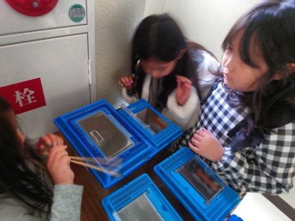 2年生の子どもたちが、ザリガニのお世話をしています。