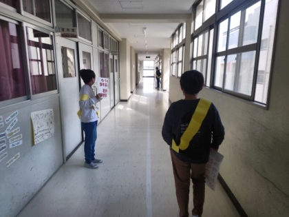 11月中の毎週水曜日の20分休みに、健康委員会の「ろうかを歩こう隊」が活動しています。