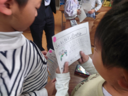 最後に、友達が書いたカードを読んで、気になるところやもっと知りたいことなどをワークシートに書きました。