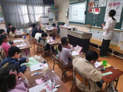 歯科衛生士の方に教室に来ていただき、「歯みがき指導」を行いました。
