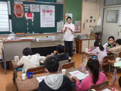 歯科衛生士の方に教室に来ていただき、「歯みがき指導」を行いました。