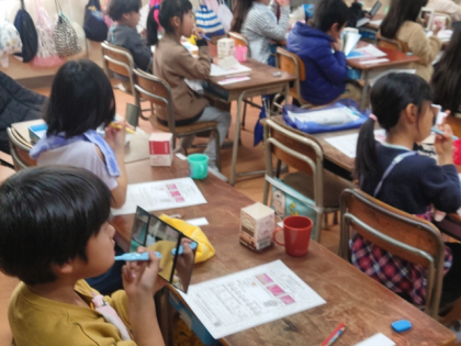 みがき残しを調べる「染め出し」を行ったあと、歯科衛生士さんから歯のみがき方をしっかり教えていただきました。