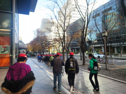 見学が終わり、学校に向かっています。