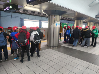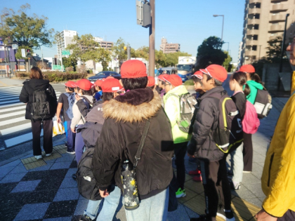見学が終わり、学校に向かっています。