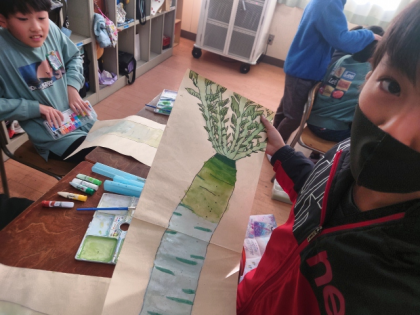 図工科の時間に、冬の味覚、大根の絵を描きました。