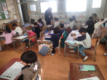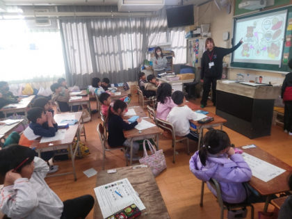 茨田北小学校の栄養教諭の先生に来ていただき、1年生の教室で栄養指導を行いました。