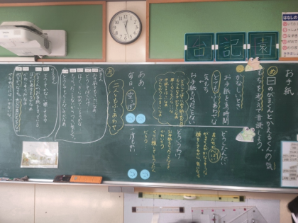今日は、1場面のがまくんとかえるくんの気持ちを考えて音読することがめあてです。