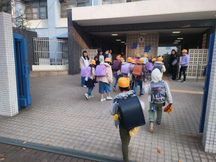 代表委員会の子どもたちが大きな声で元気にあいさつしています。