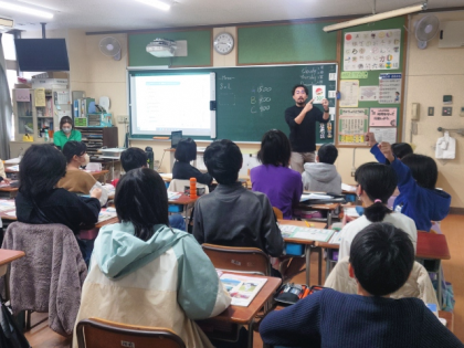 英語科の時間は、C−NET(ネイティブ)の先生に教室に来ていただき学習しました。