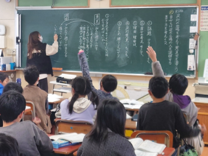 国語科の時間は、自分とは逆の立場の人を説得する書き方を考える学習をしています。