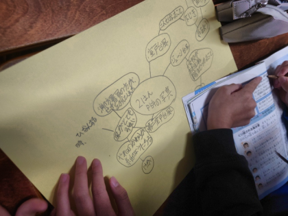 子どもたちは今、学習したことをもとに、学習用端末を使ってグループでプレゼンテーションを作っています。