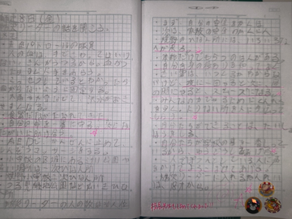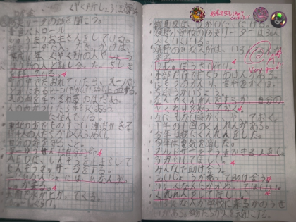 地域防災リーダーの方のお話を聞いて、子どもたちはノートいっぱいにメモをとっていました。