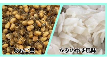かぶは焼き物機で蒸し、さっぱりとしたゆず風味の調味液をかけ、あえています。