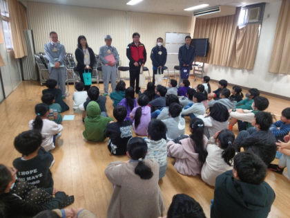今日の特別ゲストは、なんと鶴見区の内田区長はじめ防災担当、教育担当、政策推進担当の6名の皆様が学校にお越しになりました!
