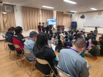 発表は、どのグループも内容がしっかりしていて、区役所の皆様から「防災について、とてもよく勉強していますね」とおほめの言葉をいただきました。