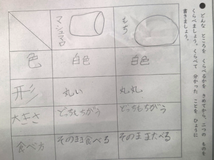 どんなところを比べるかを決めてから、2つのものを比べ、分かったことを表にまとめました。