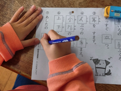 子どもたちが漢字テストに取り組んでいます。
