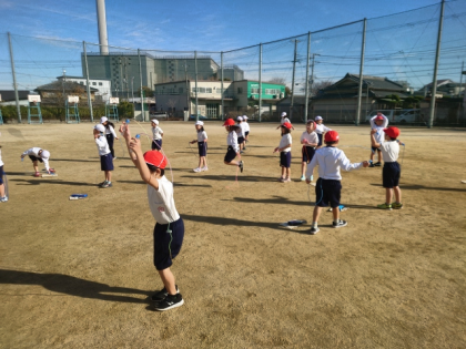 風は冷たいですが、子どもたちは元気いっぱいなわとびの練習をしています!