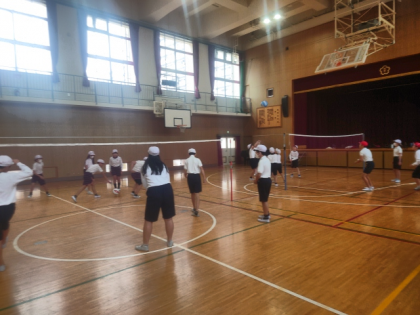 体育科の時間は、体育館でソフトバレーボールを学習しました。