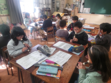 今日は、自分たちで考えた音楽をリコーダーで演奏しました。