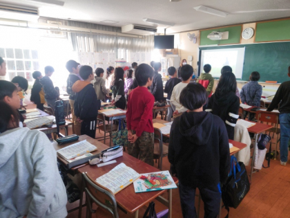 午前中は、各学級で学習をしたり、お楽しみ会をしたり、通知表を渡したり、冬休みの生活について話をしたり、大そうじをしたりしてすごしました。