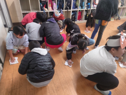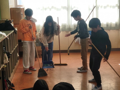 午前中は、各学級で学習をしたり、お楽しみ会をしたり、通知表を渡したり、冬休みの生活について話をしたり、大そうじをしたりしてすごしました。
