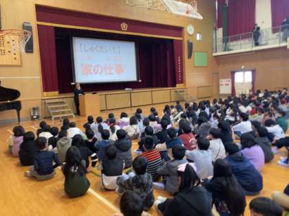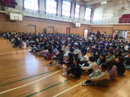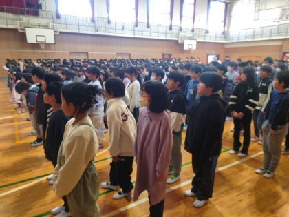 2学期終業式は、全校児童が講堂に集まって行いました。
