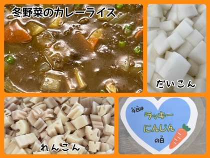「冬野菜のカレーライス」は、人気のカレーライスに、冬が旬のだいこんやれんこんなどを使用しています。