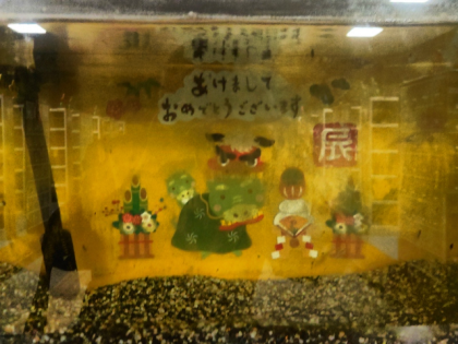 1月に入り、玄関のメダカ水槽のバックスクリーンも新年バージョンになりました。