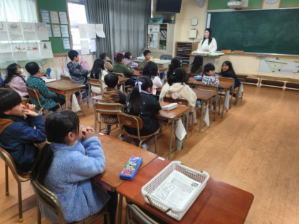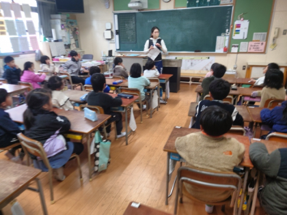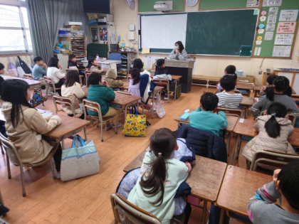 各学級で不審者への対応の仕方について担任が話をした後、放送の合図で各教室の扉をしめ、扉からできるだけ離れたところに避難する訓練をしました。